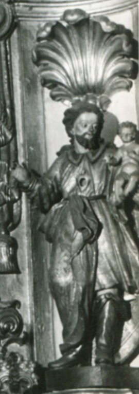 Imagem em madeira de São José de Botas de autoria desconhecida, do século XVIII e medindo cerca de 50 centímetros de altura.