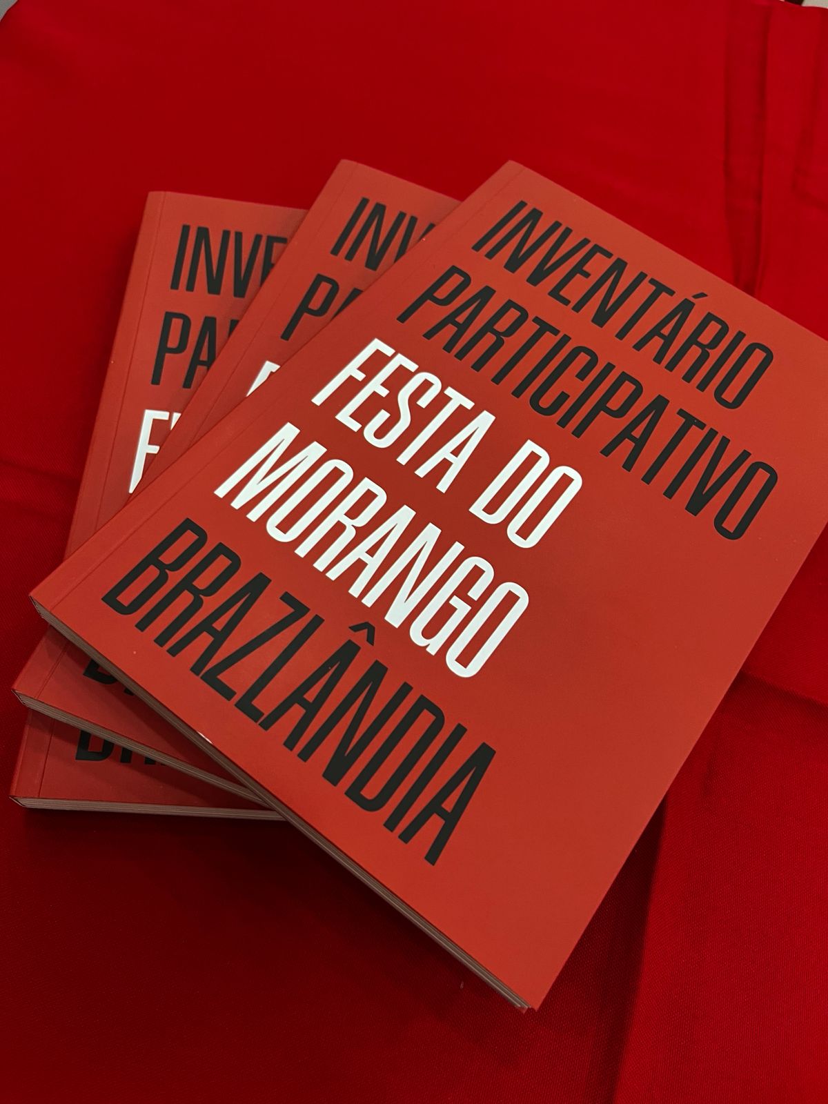 O livro “Inventário Participativo da Festa do Morango de Brazlândia” é a devolutiva de uma demanda da própria comunidade, que quis registrar na memória coletiva seu evento mais tradicional. Ele inclui 12 capítulos sobre a celebração, o território, as organizações envolvidas e os saberes associados ao evento, seguindo as orientações do Manual de Aplicação dos Inventários Participativos do Iphan. O conteúdo foi levantado ao longo de encontros, rodas de conversa e entrevistas com o público local desde 2025.