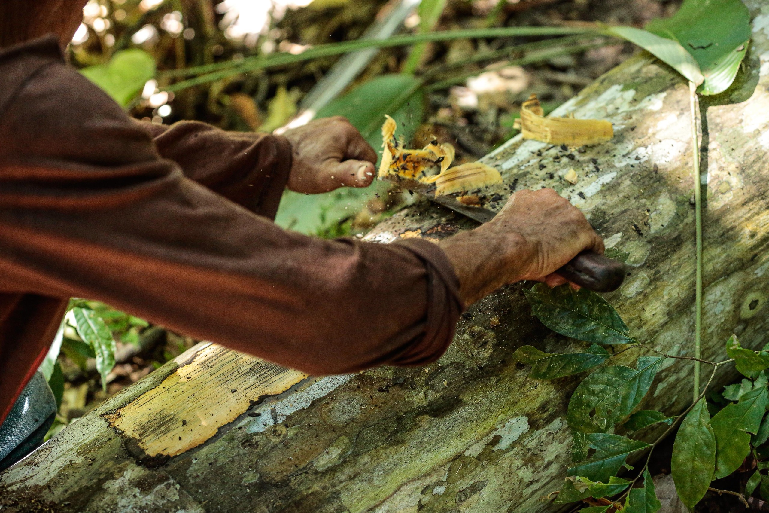 A segunda parte do evento contou com atividades na mata, como a identificação de espécies da flora e ensinamentos de como manejá-las para um melhor resultado na sua extração e futuro uso na construção. O processo empolga Balbino: “Vamos fincar os barrotes, pôr os esteios, tirar as paxiúbas, esperar o tempo da secagem, juntar as paxiúbas nas paredes, colocar o telhado de palha, fixado com envira, e deixar prontinha, bonitinha para nossa admiração e de turistas que esperamos receber.”