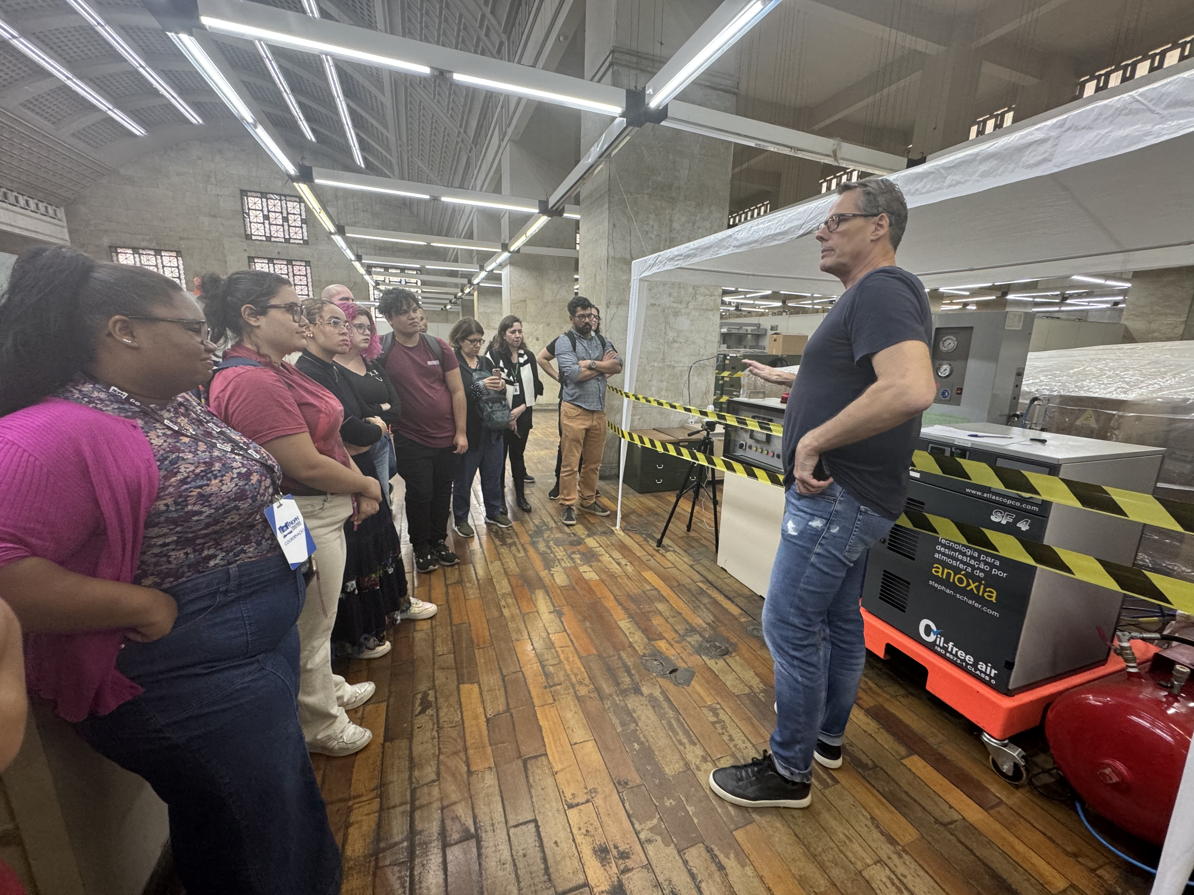 As tardes também foram dedicadas a visitas à bolha de desinfestação, desinfecção e secagem, instalada no Palácio da Fazenda para o tratamento do acervo do Iphan-RJ. O Instituto é o primeiro órgão do Brasil a realizar os três processos ao mesmo tempo.
