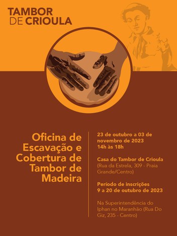 A Superintendência do Instituto do Patrimônio Histórico e Artístico Nacional no Maranhão (Iphan-MA) promoverá, no período de 23 de outubro a 3 de novembro, a primeira "Oficina de Escavação e Cobertura de Tambor de Madeira do Tambor de Crioula," na Casa do Tambor de Crioula, localizada na Rua da Estrela no Centro Histórico de São Luís (MA). A ação é uma demanda dos detentores do tambor de crioula de São Luís identificada durante a instrução técnica do processo de registro do bem cultural em 2006 e conta com o apoio do Comitê Gestor da Salvaguarda do Tambor de Crioula.