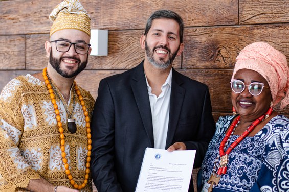 Além da mãe Maria de Xangô, estiveram presentes na comitiva o babalorixá Diego de Airá e o pesquisador Robson Outeiro, que colaborou com o livro "Nação Efon: Memória e Identidades", lançado em julho deste ano, que entregou um exemplar autografado ao presidente do Iphan.
