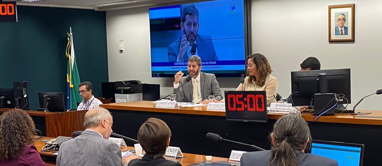 Na manhã desta terça-feira (23), a Comissão de Cultura da Câmara dos Deputados realizou audiência pública para debater a legislação referente ao Patrimônio Cultural Brasileiro. O presidente do Iphan, Leandro Grass, participou do debate e destacou temas como educação patrimonial, gestão compartilhada e a importância de uma legislação eficiente e de políticas públicas direcionadas à proteção do patrimônio cultural.