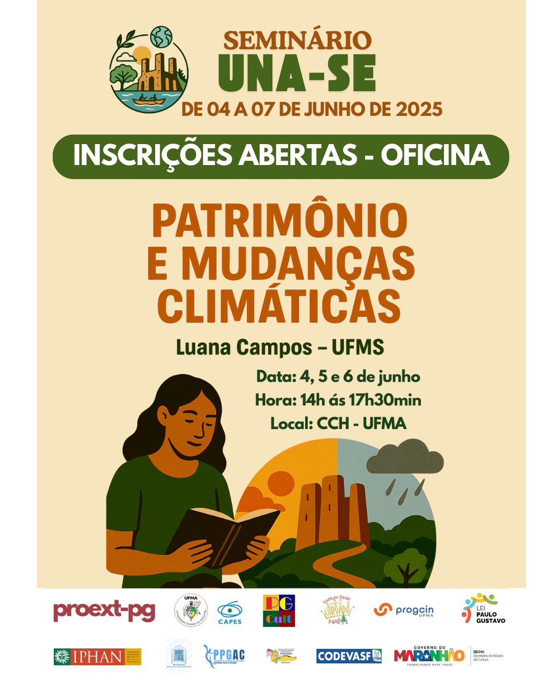 Entre os dias 4 e 7 de junho, o auditório setorial do centro de ciências humanas do Campus da Universidade Federal do Maranhão (UFMA), em São Luís (MA), receberá mais uma etapa do Ciclo de Diálogos sobre o Patrimônio Cultural e Ações Climáticas, realizado pelo Instituto do Patrimônio Histórico e Artístico Nacional (Iphan) em parceria com o Comitê de Mudanças Climáticas e Patrimônio do Conselho Internacional de Monumentos e Sítios (ICOMOS) no Brasil. As oficinas relacionadas ao bioma amazônico acontecerão dentro do Seminário UNA-SE, evento promovido pela UFMA.