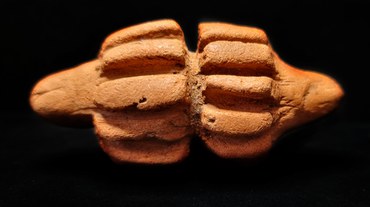 Fotos: Linha do tempo, r ecipiente cerâmico e mão de pilão (Nícolas Gualtieri)