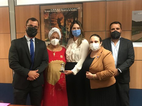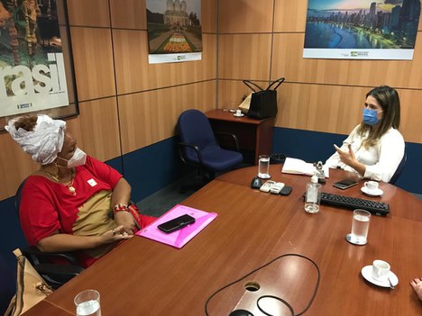 A presidente do Instituto do Patrimônio Histórico e Artístico Nacional (Iphan), Larissa Peixoto, esteve reunida nesta quarta-feira (16) com a presidente da Associação Nacional das Baianas de Acarajé (Abam), Rita Santos, no Ministério do Turismo, em Brasília (DF). Também estavam presentes o diretor do Departamento de Patrimônio Imaterial, Roger Vieira, o coordenador-geral Nacional de Licenciamento Ambiental, Roberto Stanchi, ambos do Iphan, e representantes da Abam.