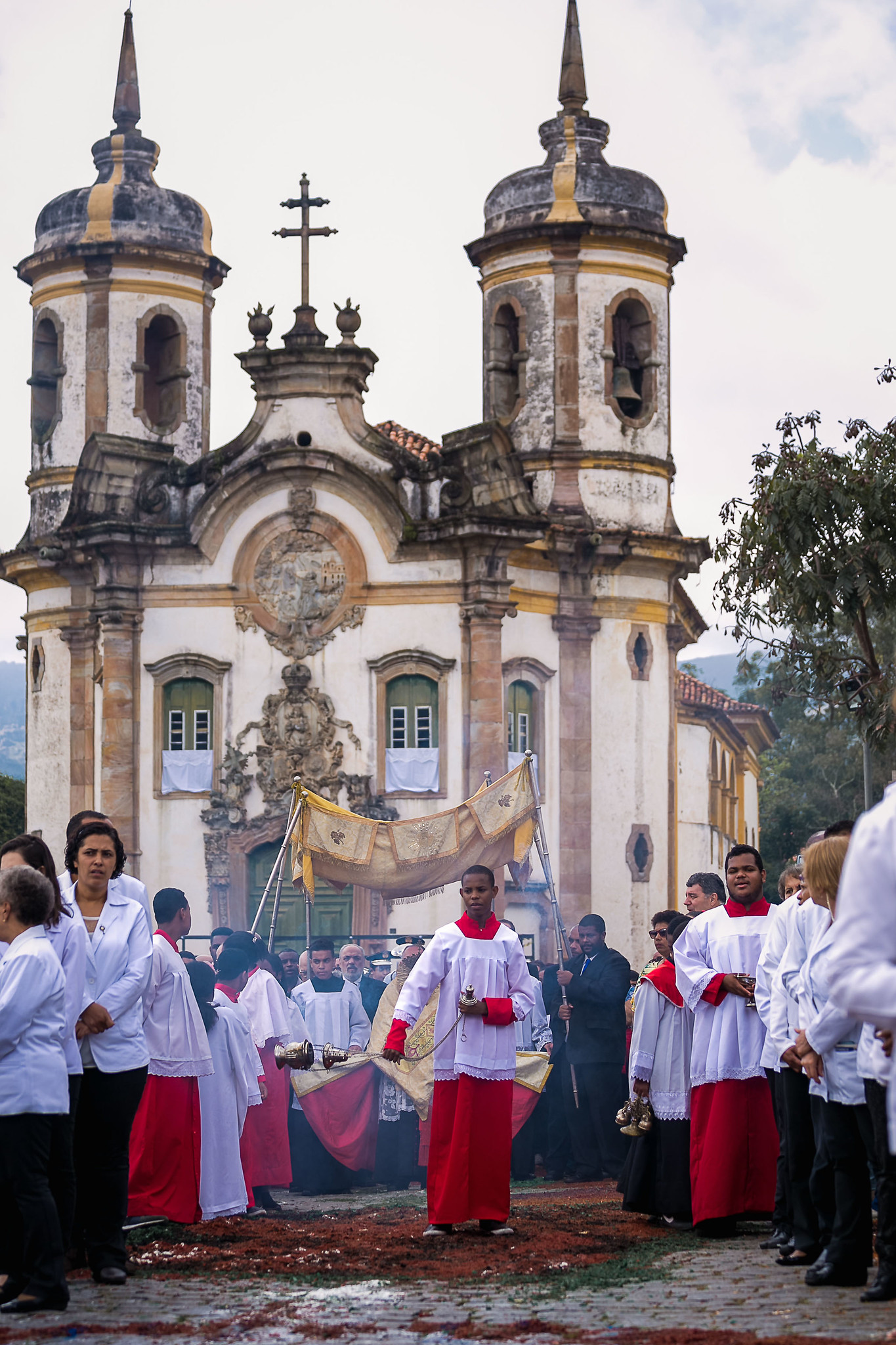 Uma das características mais marcantes dessa celebração é a confecção dos tapetes de serragem que adornam as ruas da cidade. Moradores e voluntários dedicam-se a criar verdadeiras obras de arte efêmeras, transformando as vias em tapetes de cores e símbolos religiosos. Além disso, as toalhas dispostas nas janelas das casas coloniais durante as procissões também são uma tradição enraizada há séculos, transmitida desde o século XVIII como um sinal de respeito e devoção dos moradores de Ouro Preto durante a Semana Santa.