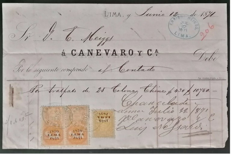 I - Um (01) recibo de pagamento pela venda relativo a colonos chineses do ano 1871;