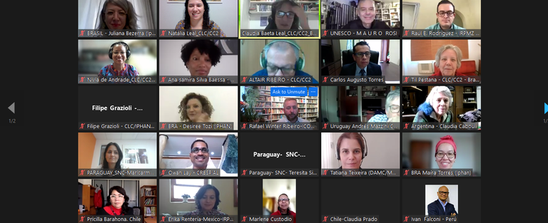 contou com três sessões, todas realizadas online. As duas primeiras, entre 28 e 29 de agosto, reuniram os países membros do CLC-CC2: Brasil, Cabo Verde, Moçambique, Argentina, Chile, Colômbia, Equador, Peru e Uruguai. Também participaram representantes do Iphan, do Centro do Patrimônio Mundial da Unesco e do Escritório da Unesco no Brasil, do Ministério da Cultura, do Ministério das Relações Exteriores, por meio do Instituto Guimarães Rosa (IGR) e da Agência Brasileira de Cooperação (ABC), o Conselho Internacional de Monumentos e Sítios (Icomos) e do Centro Internacional de Estudos para a Conservação e Restauro de Bens Culturais (ICCROM).