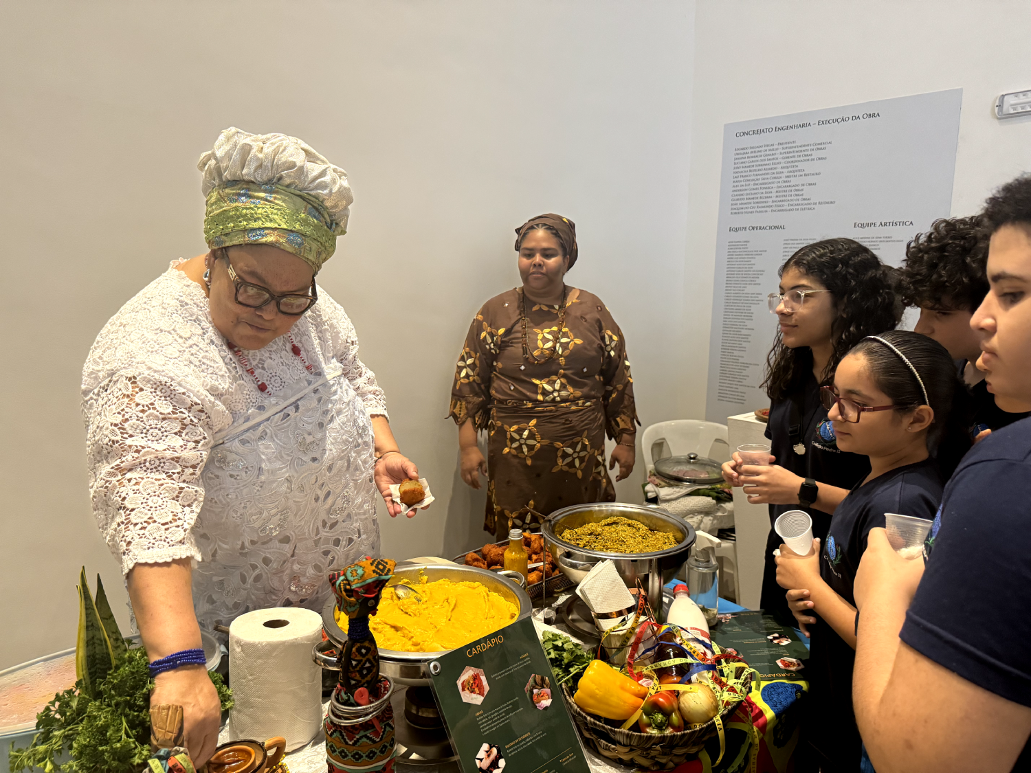 Na sexta-feira, o encerramento do seminário foi marcado por uma imersão no patrimônio imaterial. Em uma atividade que uniu sabor e conhecimento, Baianas de Acarajé compartilharam com as crianças o processo de preparo desse prato tradicional, enquanto explicavam a importância da indumentária e dos saberes transmitidos por gerações. As atividades lúdicas continuaram ao longo do dia e incluíram contação de histórias e dinâmicas sobre patrimônio.