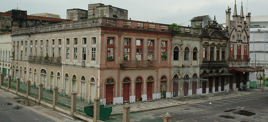 Atualmente, em Manaus (AM), os imóveis históricos, em sua maior parte, estão entre a Avenida Eduardo Ribeiro e a Rua Leonardo Malcher. Do núcleo colonial, resta apenas o traçado urbano, orgânico em contraponto ao traçado planejado, ainda no século XIX. Na arquitetura, uma boa quantidade de edifícios ecléticos ainda está preservada. O centro histórico de Manaus no século XXI apresenta uma porção urbana formada por edificações do período áureo mesclada a edifícios modernos.Os prédios da Alfândega e da Guardamoria representam uma transição entre o conjunto de armazéns (construídos de 1903 a 1910) e os edifícios da empresa Manaos Harbour Ltd., por utilizarem o sistema de pré-moldagem. Três das edificações tombadas são anteriores aos empreendimentos da Manaos Harbour: o antigo edifício do Tesouro Público (inscrições na fachada 1887-1890) de estilo neoclássico, o trapiche 15 de Novembro, e a bomba de incêndio junto a este trapiche (obras públicas de 1869 a 1881).