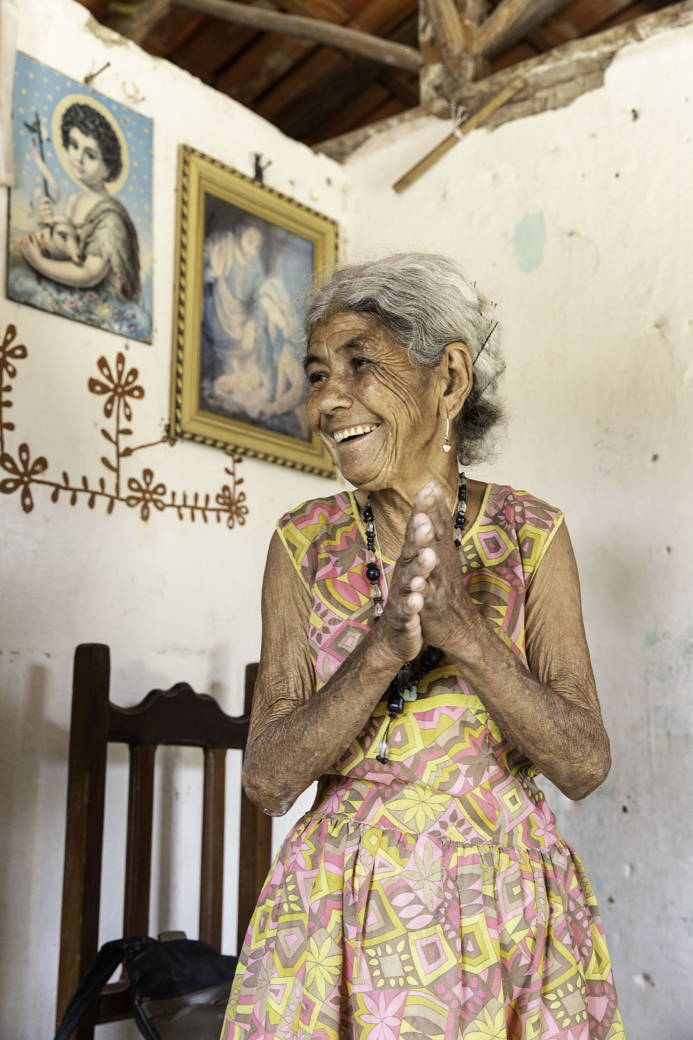 A pesquisa empreendida por Guacira em Caraí/MG, para o CNFCP em 2019, possibilitou ser recebida pela artista em sua casa. “É notável perceber como certos elementos do fazer artístico de Noemisa habitavam a vida cotidiana. A casa de alvenaria, por exemplo, onde morava, em Ribeirão da Capivara, instalada numa paisagem isolada, sem casas vizinhas, sem um estabelecimento de comércio; nela, o voto de beleza surgia nas linhas suaves dos ornamentos florais desenhados com tabatinga e tauá sobre a superfície branca da parede”, descreve a pesquisadora em seu trabalho, que divulgamos aqui.