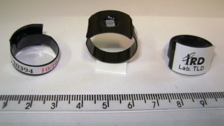 Trabalhadores envolvidos em atividades sujeitas a maior irradiação das mãos do que do tronco são monitorados adicionalmente por dosímetros de extremidade do tipo anel com detectores termoluminescentes (TLD). O anel, em plástico preto e descartável, é fabricado no próprio laboratório e usa um chip de TLD-100. Quando no local de trabalhado houver nêutrons, o TLD-100 é substituído por um TLD-700. Os anéis dosimétricos são calibrados em Hp(0,07).