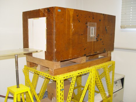 O LBE localiza-se em um prédio (15,05 x 7,80 x 6,00 m3) com paredes tipo telha-forro. A telha-forro é feita com chapas de aço (certificadas pela Companhia Siderúrgica Nacional - CSN) tipo Galvalume AZ150 com 0,5 mm de espessura, forma trapézio 40 e núcleo de Poliestireno Expandido - EPS tipo F (auto extinguível) com 30 mm de espessura e densidade média de 13 kg/m3. O Galvalume (ou Zincalume) é produzido a partir de uma chapa de aço revestida por uma liga de alumínio (55%), zinco (43,5%) e silício (1,5%). O LBE possui sistemas de refrigeração e sinalização, tendo uma plataforma elevada a 1,86 m do nível do solo, onde são posicionados os equipamentos a serem calibrados e a fonte para irradiação. Para posicionamento dos equipamentos existem 2 carrinhos que se deslocam em eixos opostos e outros 2 carrinhos que também se deslocam em eixos opostos, mas perpendicularmente em relação aos eixos anteriores. Os carrinhos são acionados remotamente e um sistema de circuito fechado de câmaras de TV, permite visualizar o movimento de todo o sistema.