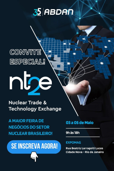 A NT2E, maior evento de negócios e tecnologia do setor nuclear brasileiro, será realizada de 3 a 5 de maio, no Rio de Janeiro. Com realização bianual, a NT2E reúne os principais players do mercado para apresentar as novidades do setor e discutir os desafios e oportunidades do mercado nuclear.