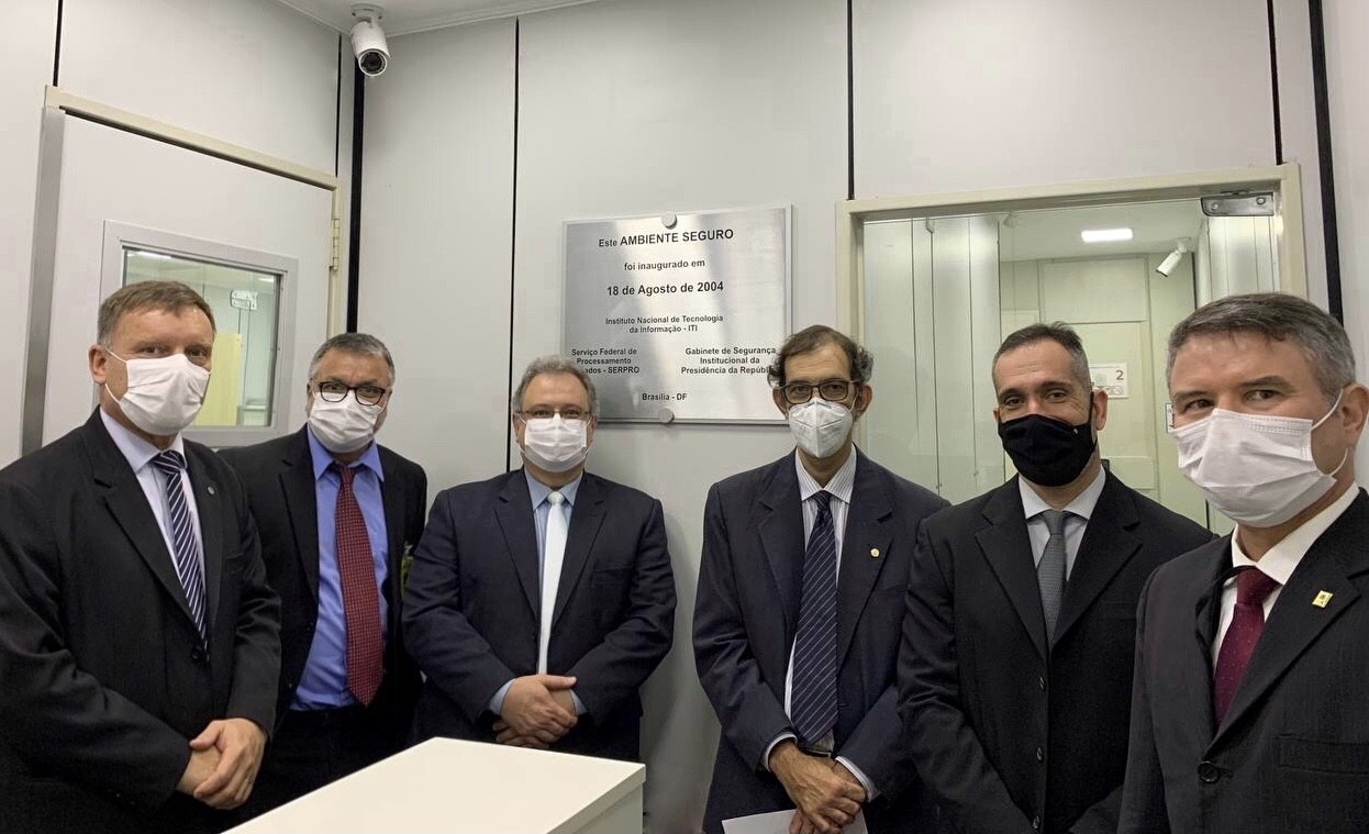 Carlos Fortner - Diretor-presidente do ITI, Luiz Fernando Rust da Costa do Carmo - Coordenador-Geral do Centro de Capacitação do Inmetro, Maurício Coelho - Diretor de Infraestrutura de Chaves Públicas do ITI, Rodolfo Saboia Souza - Chefe da Divisão de Metrologia do Inmetro, Rodrigo Pereira David -