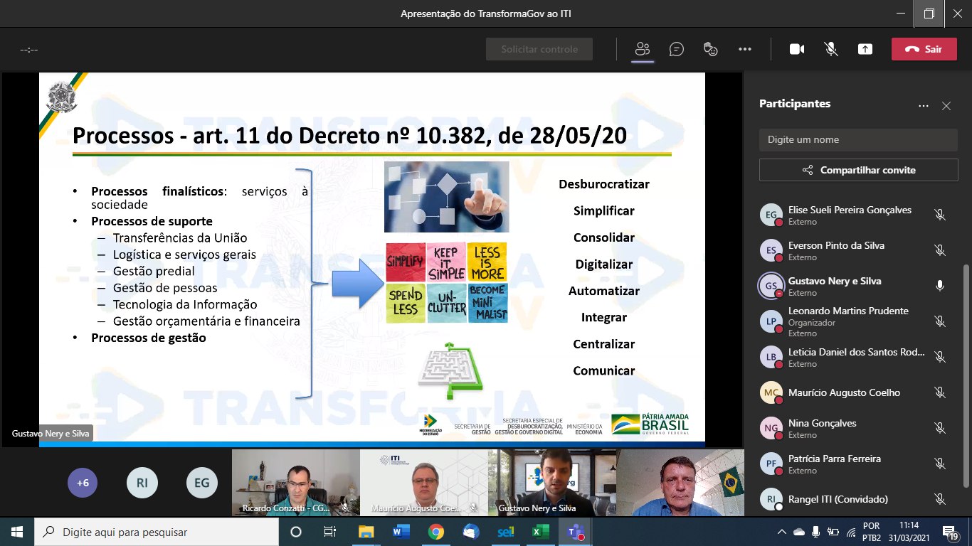 APRESENTAÇÃO DO TRANSFOMAGOV PARA O ITI. 31/03/2021 11:00hs