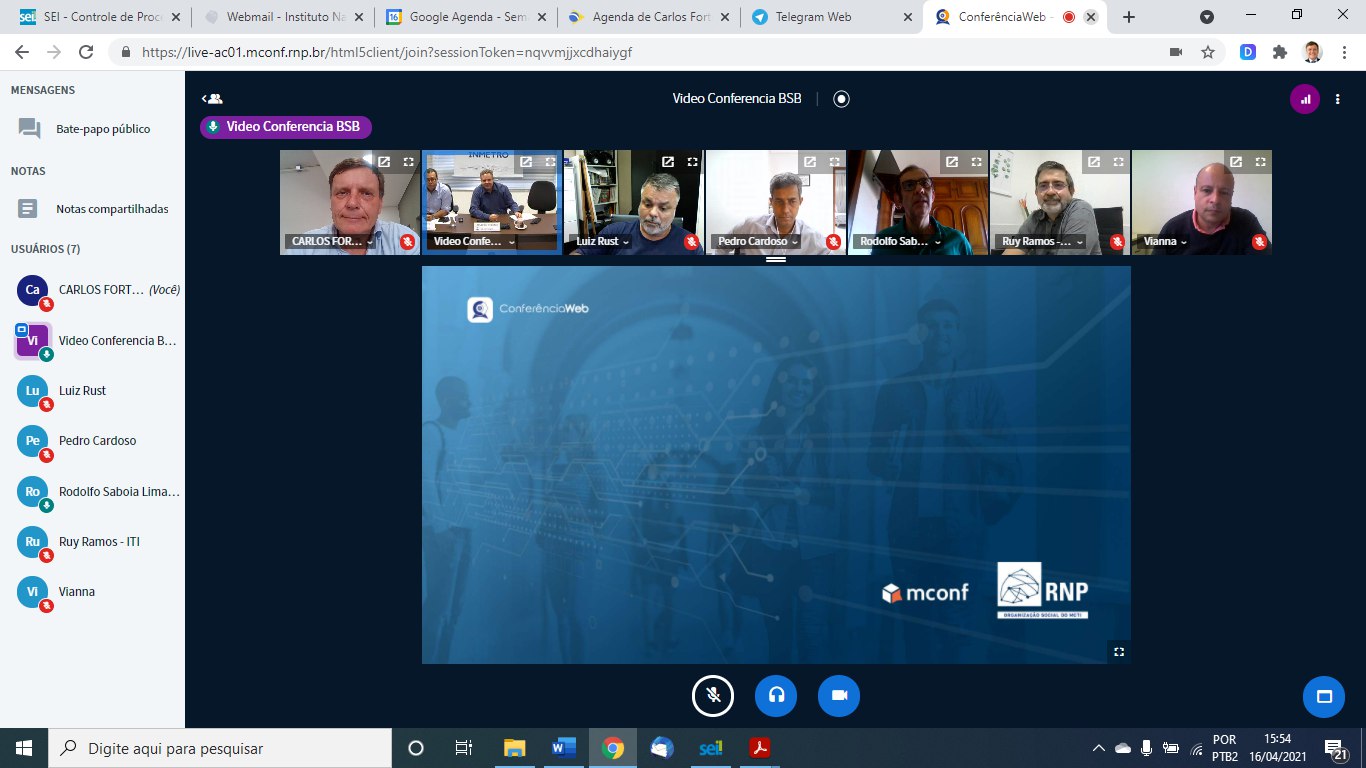 VIDEOCONFERÊNCIA PONTO DE CONTROLE INMETRO 16/04/2021 15:00hs