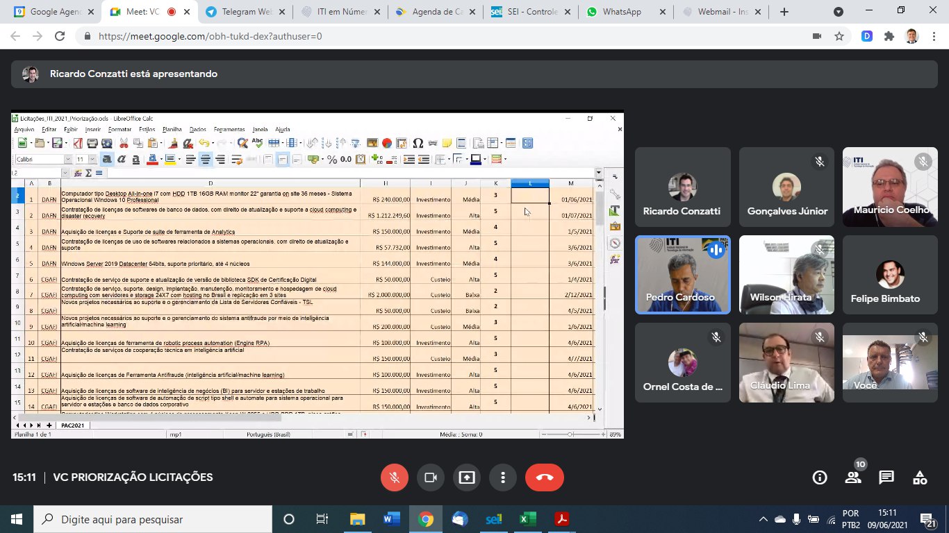 VIDEOCONFERÊNCIA PRIORIZAÇÃO LICITAÇÕES 09/06/2021 15:00hs