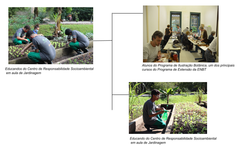 O programa de Extensão da ENBT promove a articulação entre o ensino e a pesquisa e a interlocução com a sociedade. Dele fazem parte cursos abertos ao público, como os do programa de Ilustração Botânica, atividades de divulgação científica e outras iniciativas no Jardim Botânico e extramuros.