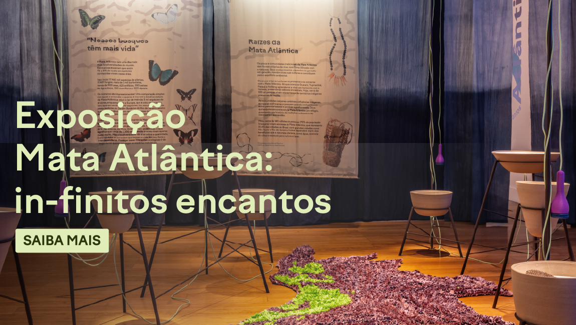 A exposição Mata Atlântica: in-finitos encantos convida você a conhecer essa diversidade. Com imagens, sons e experiências interativas, você será apresentado à impressionante biodiversidade da Mata Atlântica e aos desafios para sua conservação. Ao final da exposição, esperamos que você consiga entender perfeitamente por que somos gigante pela própria natureza, como diz o hino do Brasil.