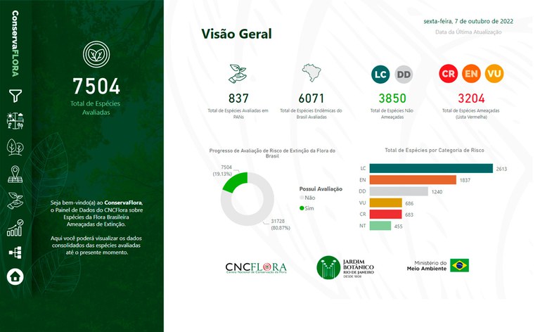 O painel possibilita também a visualização de um panorama acerca do trabalho desenvolvido pelo CNCFlora no escopo da conservação espécies da flora no Brasil.