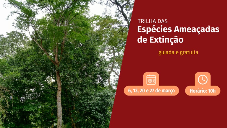 As saídas serão nos dias 6, 13, 20 e 27 de março, sempre às 10h. A trilha é gratuita, havendo apenas cobrança de ingresso para o arboreto. O ponto de encontro é o Centro de Visitantes.