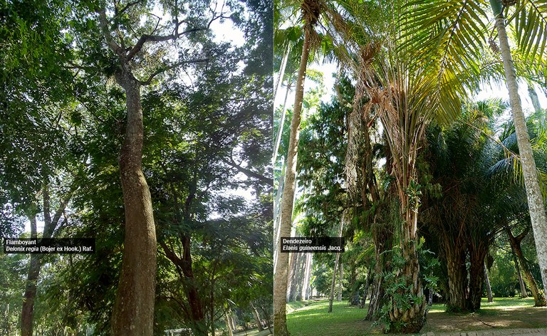Dentre as espécies que podem ser observadas, estão o flamboyant (Delonix regia), planta nativa de Madagascar, e o dendezeiro (Elaeis guineensis), nativo da costa ocidental africana, do Senegal a Angola.