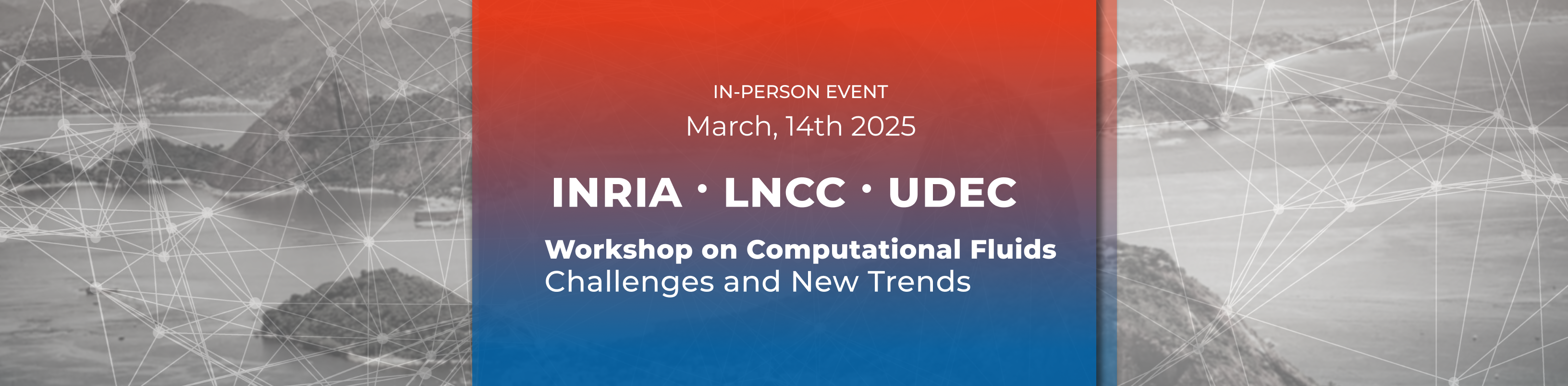 In the context of Inria's international initiatives in Chile (Inria Chile, the only Inria center abroad in Santiago since 2012, partner of many Chilean universities, including the Universidad de Concepción - UDEC) and in Brazil (Inria-Brazil program based on a partnership with LNCC, acting as a hub for the Brazilian research and innovation ecosystem), this Workshop aims to bring together research teams from Inria, LNCC and UDEC with expertise in computational simulation of realistic fluid flow problems with applications in areas such as energy, environment and medicine. The focus of this Workshop also includes the challenges and contributions of mathematical analysis, computational implementation on parallel machines and their interaction with machine learning techniques for the simulation of fluids.