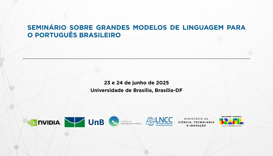O seminário "Grandes Modelos de Linguagem para Português Brasileiro" é um evento pioneiro que reúne pesquisadores, desenvolvedores, profissionais da indústria e representantes de instituições públicas para discutir avanços, desafios e aplicações responsáveis de modelos de linguagem de grande escala no contexto do português brasileiro. Com foco nas particularidades linguísticas, culturais e sociais do idioma, o evento visa fomentar colaborações estratégicas, explorar soluções para barreiras técnicas (como escassez de dados e adaptação contextual), e debater questões éticas, inclusão digital e impacto social. Ao integrar perspectivas acadêmicas, tecnológicas e governamentais, o seminário busca não apenas impulsionar a inovação em IA para língua portuguesa, mas também garantir que essas tecnologias sejam acessíveis, equitativas e alinhadas às necessidades específicas da sociedade brasileira, consolidando-se como um marco para a comunidade de inteligência artificial em línguas além do inglês.
