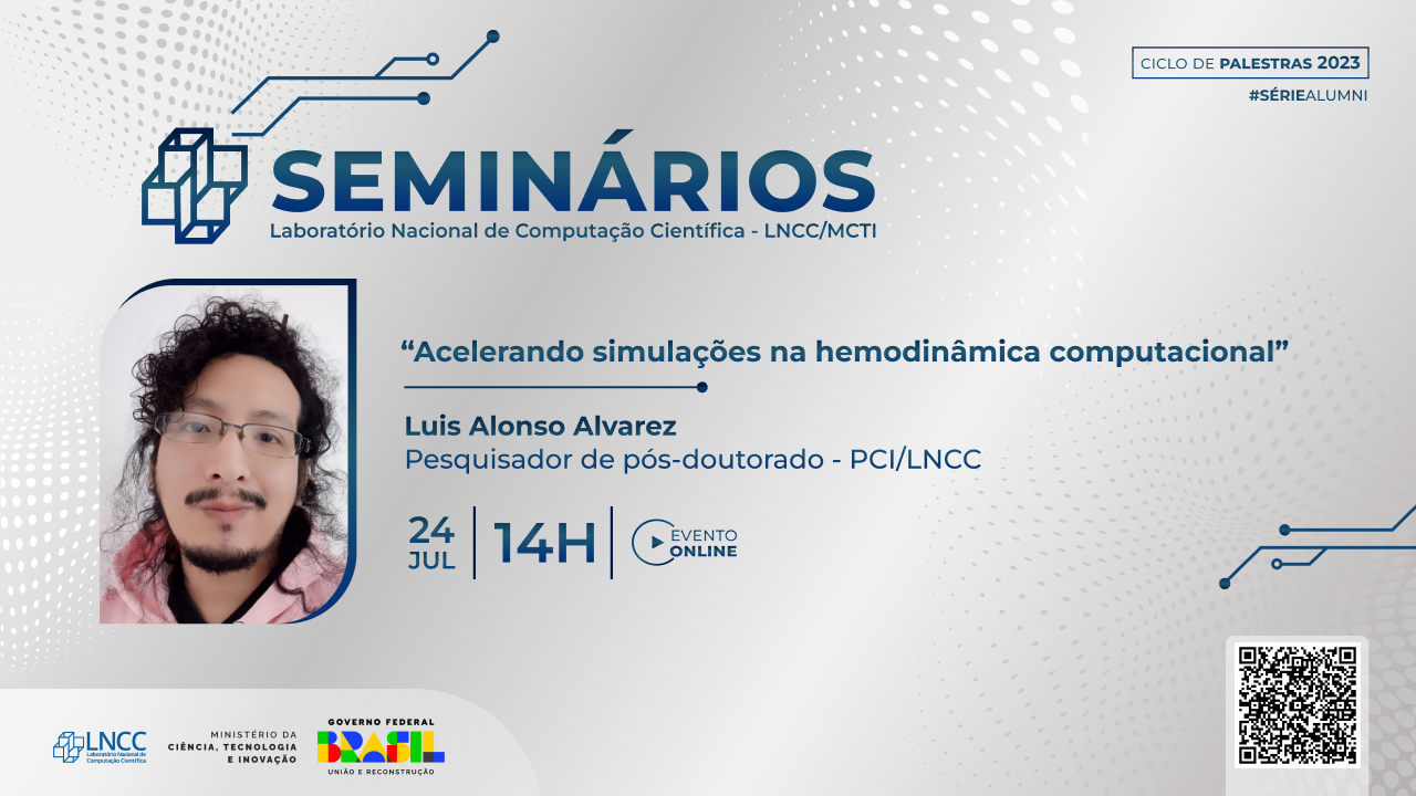 As palestras da Série Alumni são oferecidas por ex-alunos do LNCC e têm como objetivo o compartilhamento de suas experiências em pesquisa após a conclusão do curso com os atuais alunos do LNCC. Esta série oferece uma visão geral das atividades de pesquisa que os alunos podem realizar após a conclusão do curso de Pós-graduação em Modelagem Computacional no LNCC.