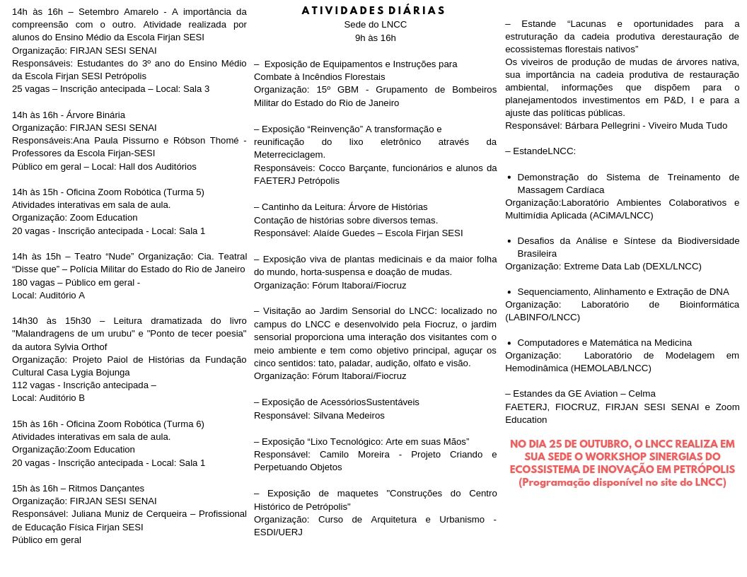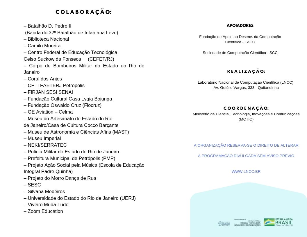 No dia 25 de outubro , também dentro da programação da SNCT, o LNCC realiza em sua sede o Workshop Sinergias do Ecossistema de Inovação em Petrópolis (Programação disponível em nosso site).