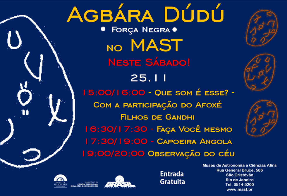 O dia da consciência negra foi celebrado na última segunda-feira (20), mas o Museu de Astronomia e Ciências Afins (MAST) estende as comemorações por essa data tão importante, que é dedicada à reflexão sobre a inserção dos negros na sociedade brasileira. As atividades gratuitas terão início às 15hs, com oficinas e atrações promovendo interatividade aos participantes.