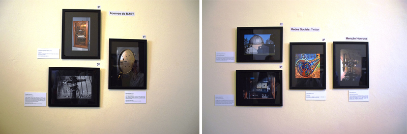 Também foram premiados Flávia de Oliveira, na categoria Redes Sociais - Twitter , e Iris Carvalho, entre os concorrentes do tema Contrastes Entre o Patrimônio Arquitetônico do Campus ON/MAST e a Natureza . Já na categoria Redes Sociais - Instagram foram laureados Angela Chada, Laura Tui e Antoni Vieira. Entre funcionários do MAST que concorreram na categoria Servidores e Colaboradores , tiveram o reconhecimento pelas suas fotografias Edilene dos Santos Ferreira, Paulo Félix, Higor Martinez Oliveira e Magna Farias. Em seguida à solenidade de premiação, Diretores, Coordenadores, premiados e convidados subiram ao terceiro andar do Prédio Sede do MAST para a abertura da exposição 1 o Concurso Cultural de Fotografia do MAST , montada em uma sala próxima à Biblioteca.