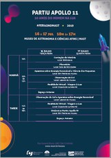 No dia 16 de julho de 1969, a Nave Apollo 11 decolou em direção do satélite natural da Terra para a missão mais espetacular e audaciosa da corrida espacial, feita até então. Quatro dias depois da partida, o foguete tripulado pelos astronautas Buzz Aldrin , Michael Collins e Neil Armstrong chegou ao seu destino. E foi Armstrong o primeiro humano a pisar na superfície lunar e deixar para a posteridade a célebre imagem da pegada com sua bota. Para comemorar os 50 anos do primeiro pouso do homem na Lua, o Museu de Astronomia e Ciências Afins (MAST) e Observatório Nacional (ON) realizam o evento Partiu Apollo 11! , com uma programação especial para receber o público nos dias 16 e 17 de julho , com diversas atividades gratuitas .