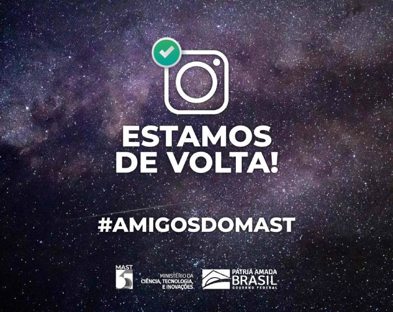 Estamos de volta com o perfil oficial do Museu de Astronomia e Ciências Afins (MAST) no Instagram, após sete dias. Este comunicado tem como propósito manter a transparência no relacionamento que temos com nossos seguidores em todas as redes sociais.