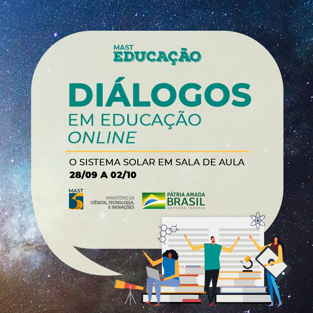 No início de 2020, o Museu de Astronomia e Ciências Afins (MAST) elaborou a atividade Diálogos em Educação , voltada para a formação de profissionais de educação em temas de astronomia para dar suporte às práticas pedagógicas. Adaptando-se à nova realidade por conta da pandemia da COVID-19, a ação mudou sua metodologia para continuar a formação de educadores/as com o mesmo objetivo, porém, no ambiente virtual .