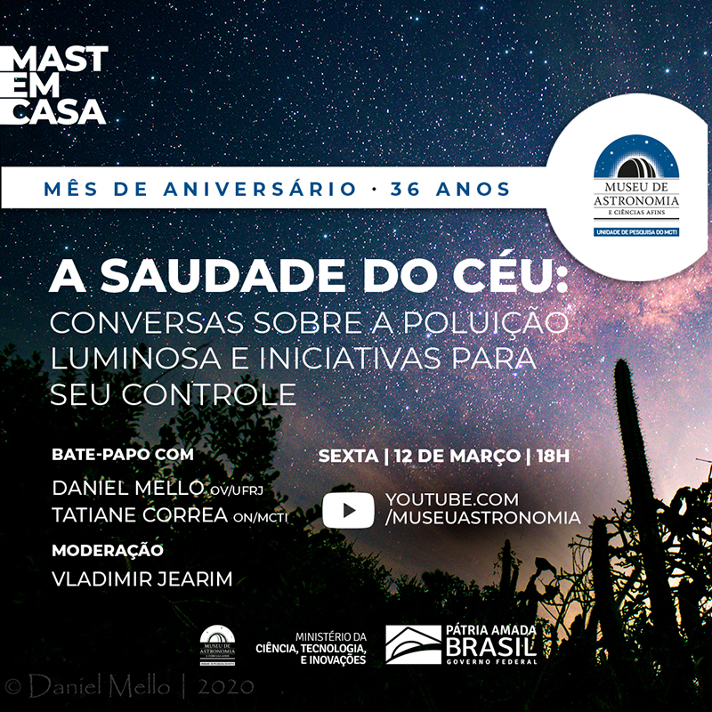 Descubra ao vivo, a partir das 18h , por meio do Canal do MAST no Youtube .