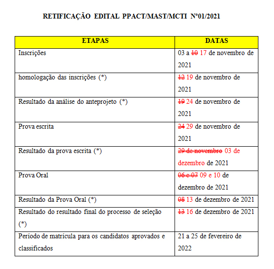 Resultados do Processo Edital PPACT/MAST Nº01/2021
