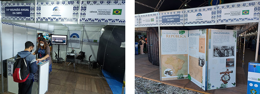 É uma grande felicidade poder divulgar a ciência que fazemos no MAST, ainda mais em grandes eventos da área. Ao longo dessa semana estivemos na 74ª Reunião da SBPC, realizada na Universidade de Brasília (UnB). Nosso estande de 75m² ficou localizado na entrada da Vila da Ciência, onde também o ministro de Ciência, Tecnologia e Inovações fez a abertura do evento e tirou uma foto com a equipe do MAST.