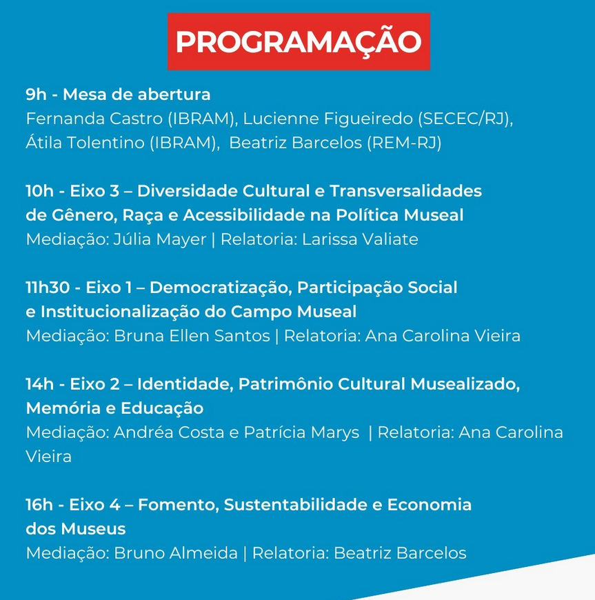 O Museu de Astronomia e Ciências Afins (MAST), em parceria com a Rede de Educadores de Museus do Rio de Janeiro (REM-RJ), convida educadores museais e interessados a participar de uma atividade autogestionada para discutir a inclusão da Educação Museal no Plano Nacional Setorial de Museus (PNSM), atualmente em revisão participativa.