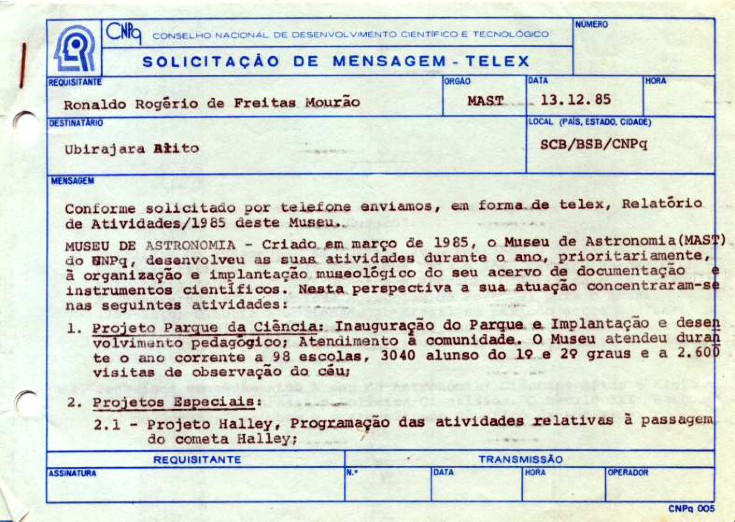 Astrônomo Ronaldo Mourão, fundador do MAST, na cerimônia de inauguração ao lado de Maria Luísa de Oliveira Mourão há 40 anos.