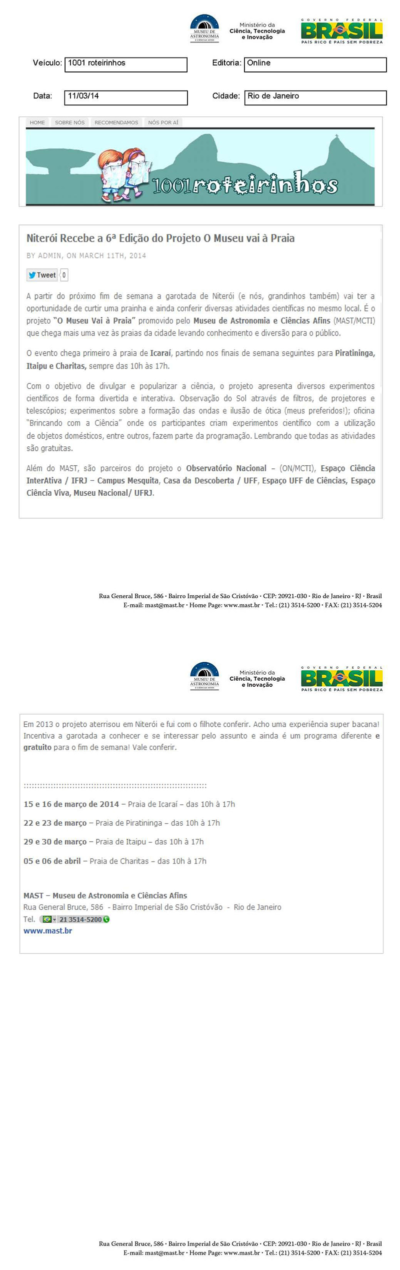 1001 Roteirinhos | Niterói recebe a 6ª Edição do Projeto O Museu vai à Praia