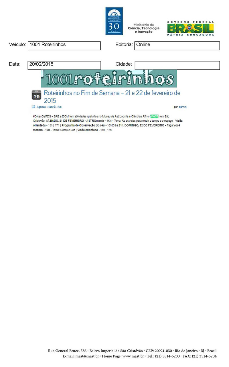 1001 Roteirinhos | Roteirinhos no Fim de Semana - 21 e 22 de fevereiro de 2015