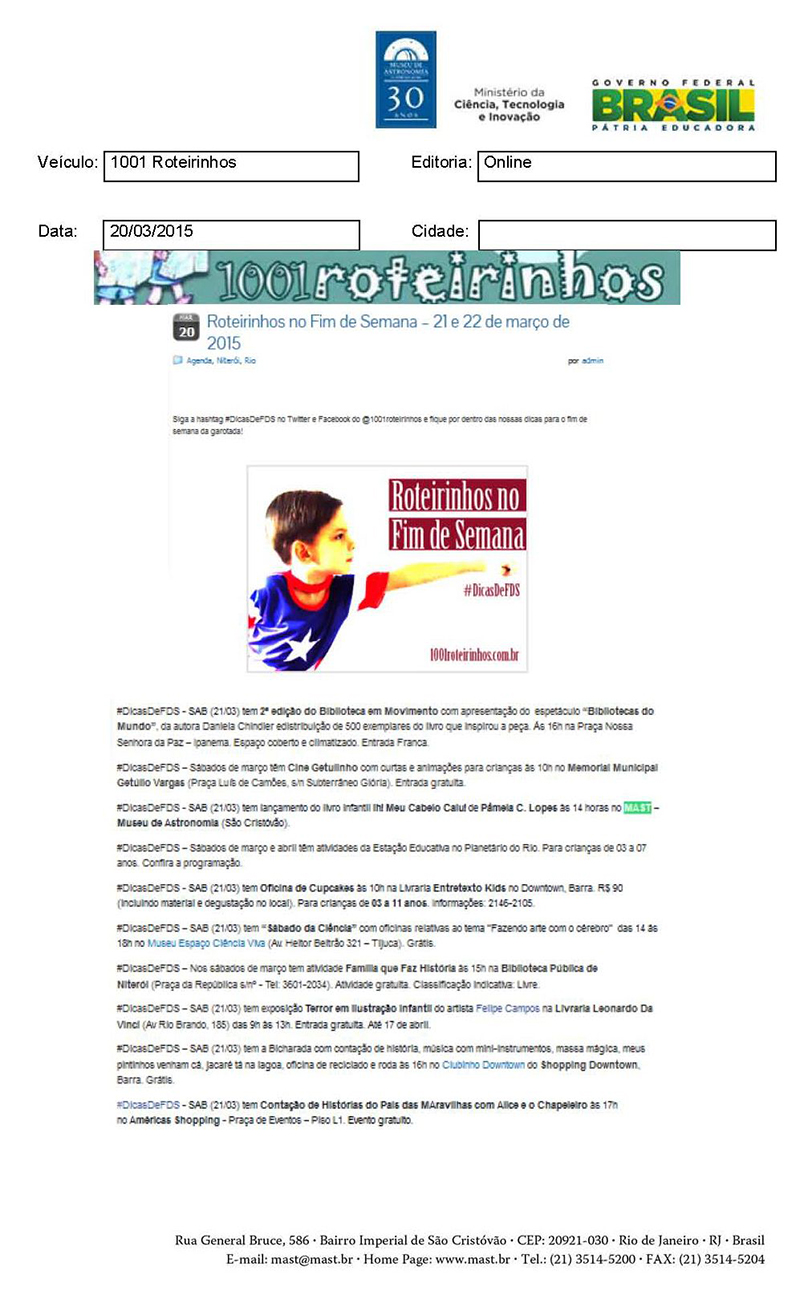 1001 Roteirinhos | Roteirinhos no Fim de Semana - 21 e 22 de março de 2015
