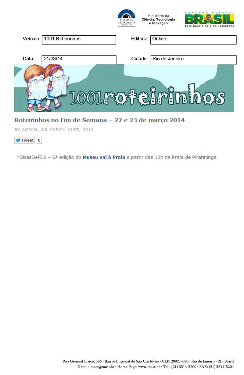 1001 Roteirinhos | Roteirinhos no Fim de Semana - 22 e 23 de março 2014