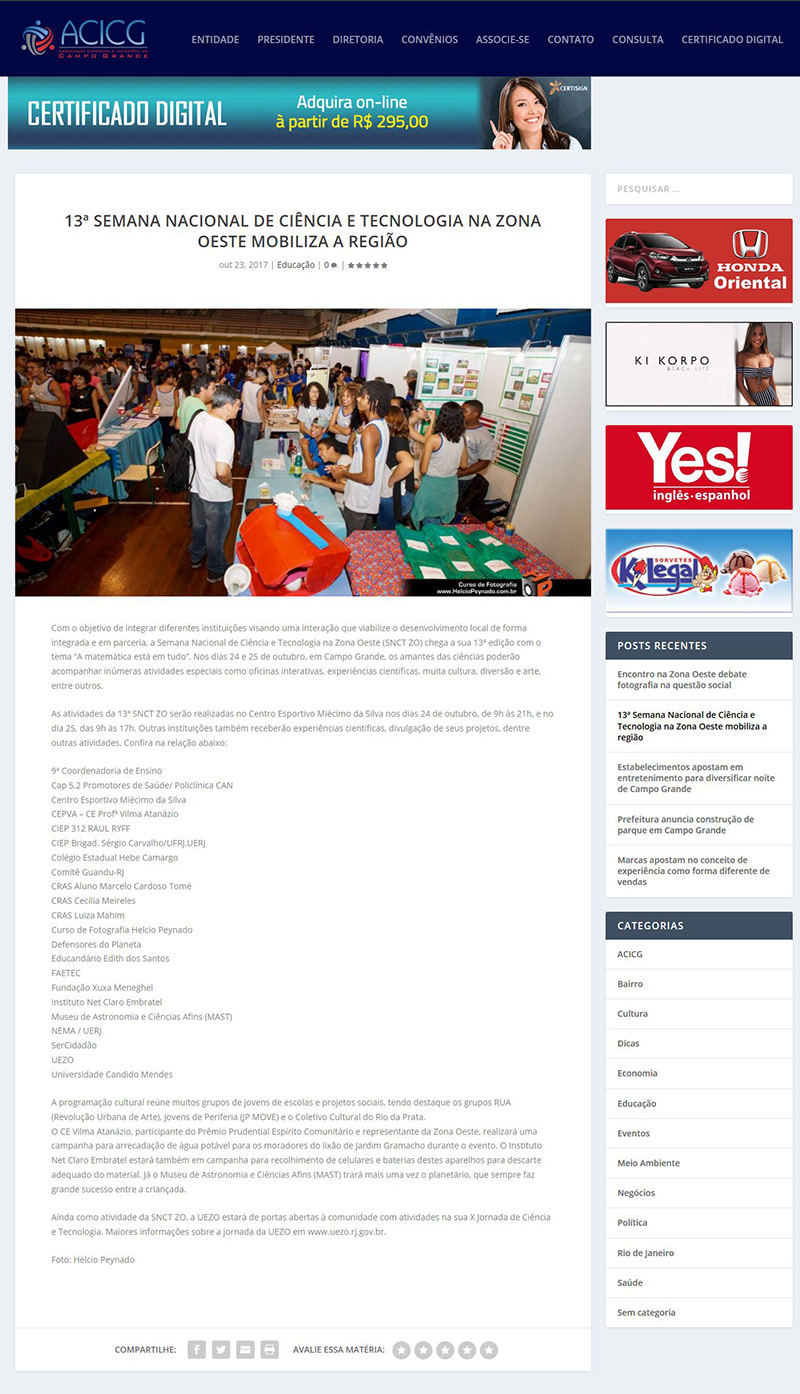 Site ACICG | 14ª Semana Nacional de Ciência e Tecnologia na Zona Oeste mobiliza a região
