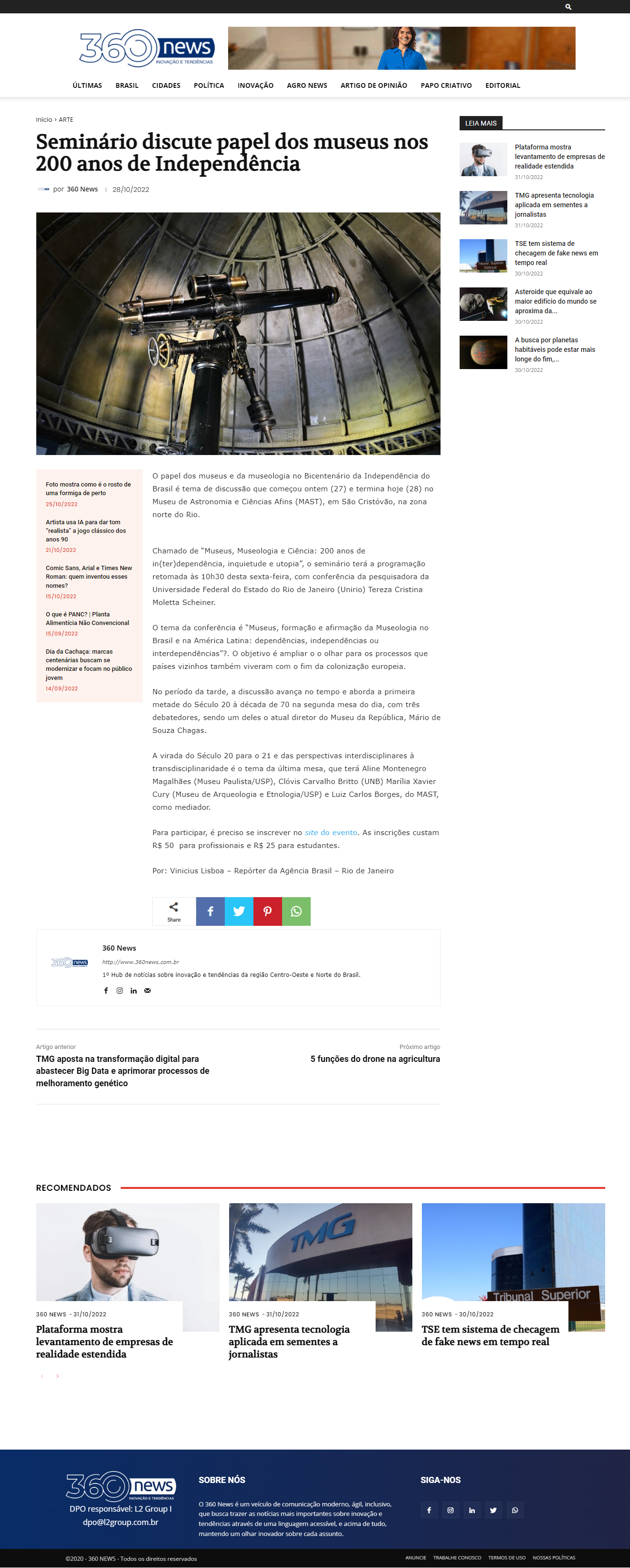 360 News - Seminário discute papel dos museus nos 200 anos de Independência
