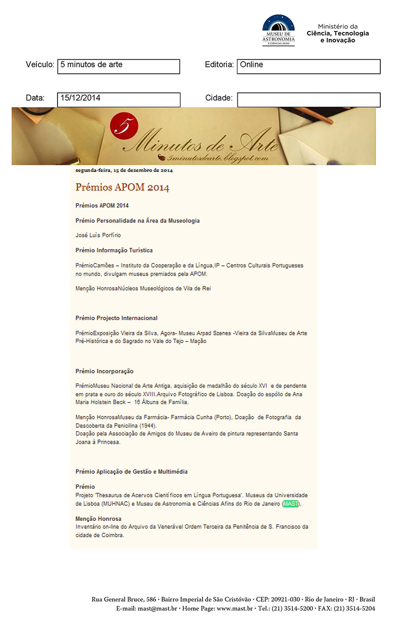 5 Minutos de Arte | Prémio APOM 2014