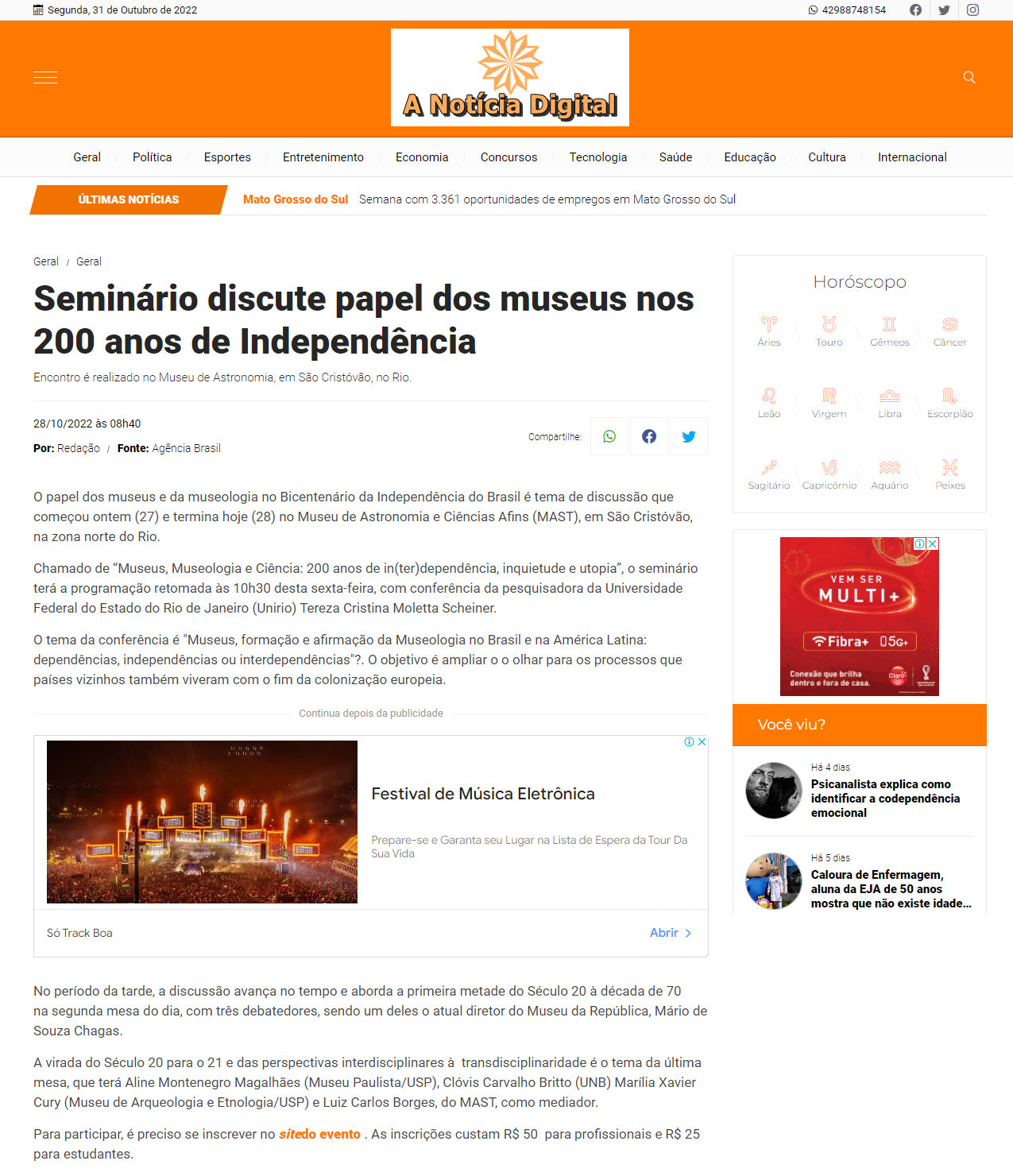 A Notícia Digital - Seminário discute papel dos museus nos 200 anos de Independência